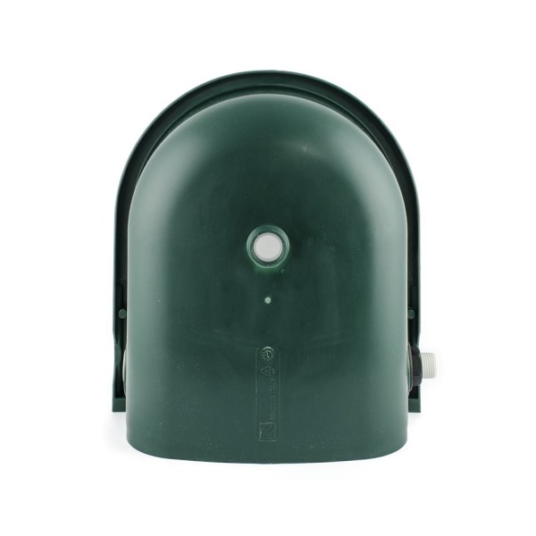 Abbeveratoio in plastica a livello costante con piastra in acciaio e tappo per pulizia.