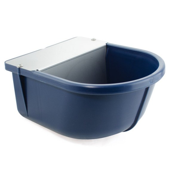 Abbeveratoio plastica a livello costante con piastra in acciaio e tappo per pulizia.