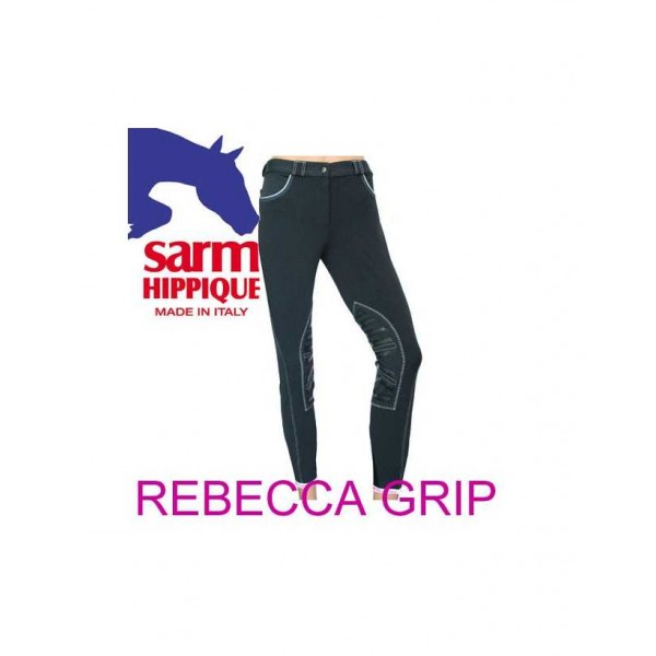 Pantalone donna mod.Rebecca Sarm Hippique è una pantalone realizzato in microfibra idrorepellente e traspirante.Motivo riportato sulle tasche e sui passanti.Toppa con grip per una maggior aderenza .Calzino in fondo elastico.