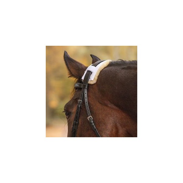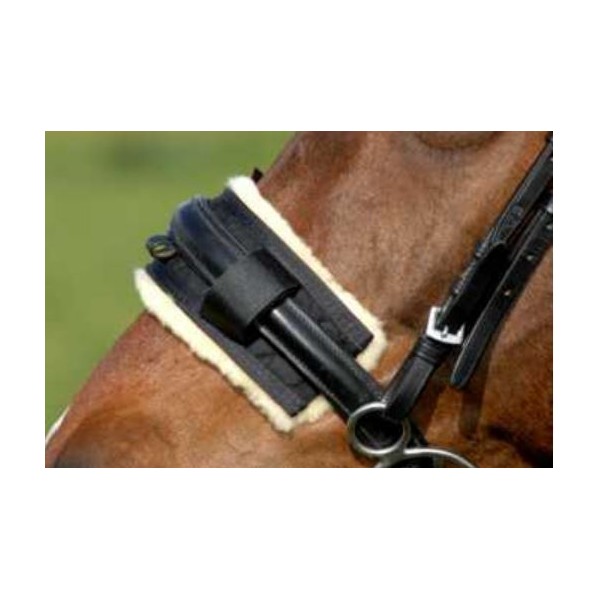 Protezione in vero agnello per cavallo da inserire della testiera per cavalli sensibili.Facile fissaggio con n. 3 velcri.Lunghezza cm 28