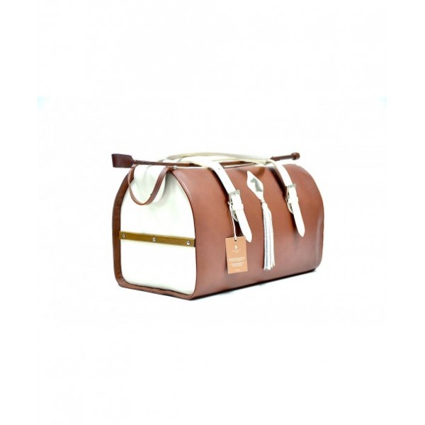 Borsone Italica unisex di grandi dimensioni in cuoio pregiato.Si caratterizza per un ampio spazio interno,maniglie regolabili e chuisura a doppia cerniera con magnete.Finiture oro.Colore beige/marrone. Mis. lung.50 cm - larg.27 cm - alt.30 cm.