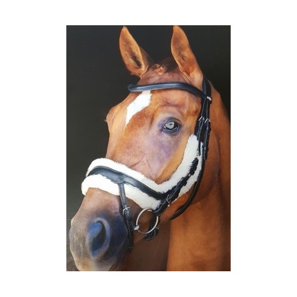 Equitus Zeta Schockemohle is an anatomical special bridle with perfect fitting | curve caveson bypasses the main facial nerve | noseband width at front without fur approx. 35 mm | for more comfort: padded with soft sheepskin | sheep skin is heat compensating as well as breathable | sheepskin attached with velcro fasteners for easy cleaning (washable on 30°C in wool program with special detergent) | softly padded headpiece with anatomica shape | wide and curved browband avoids pinching in the area of eyes and ears | new positioning of flash strap supports unrestricted breathing | quick and individual adjustment with improved button rivets
