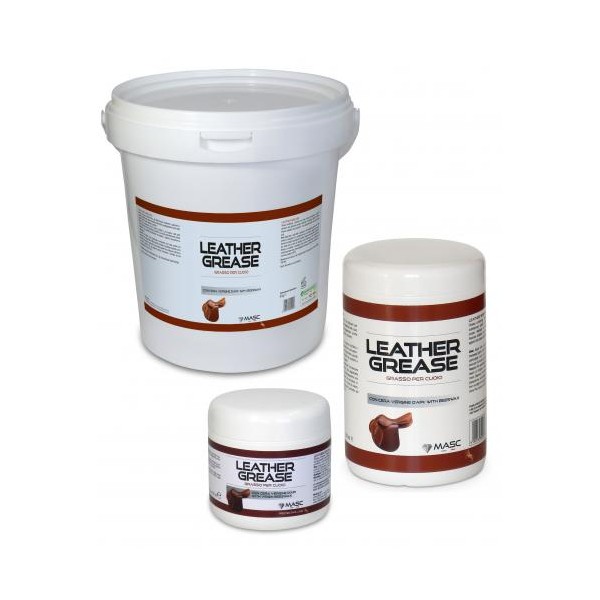 Grasso per cuoio LEATHER GREASE MASC con cera vergine d'api . Mantiene e garantisce la giusta elasticità del cuoio da selleria, isolandolo e proteggendolo anche dagli agenti esterni come sudore e polvere.
