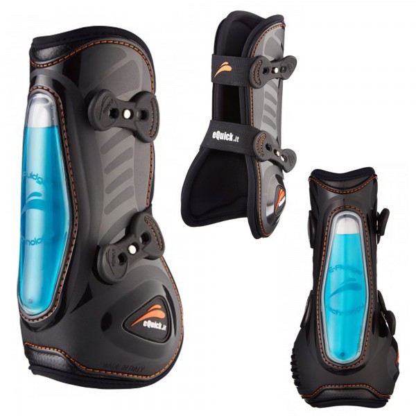 Stinchiere eShock eQuick realizzate in materiale di alta qualità affidabilità e resistenza dalla forma anatomica per avvolgere il tendine del cavallo per preservarlo da traumi garantendone il comfort.Scafo esterno realizzato in TPU, rivestimento interno in morbido neoprene con bordi in lycra antifiaccature. Regolazione facile con due punti di aggancio e cinghia elastica.L' esclusiva tecnologia brevettata eFluidGel riduce drasticamente l'urto sul tendine del cavallo.