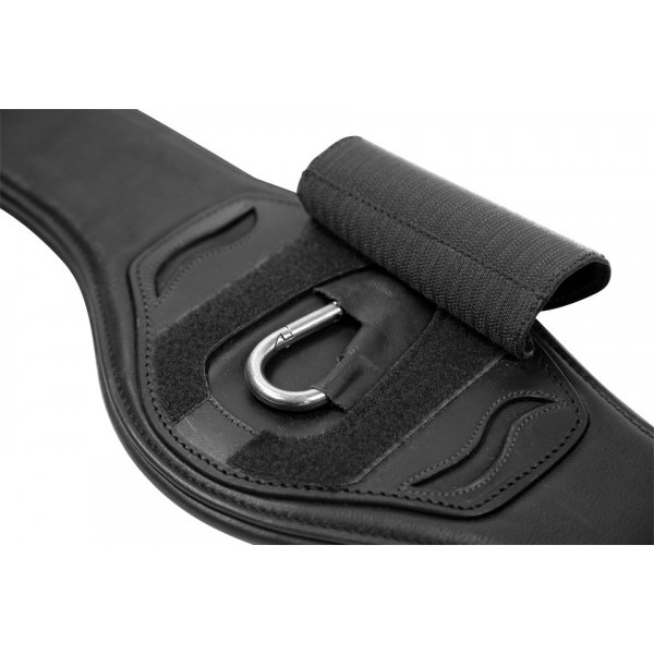 PORTLAND is a new, anatomically cut long girth from SCHOCKEMOHLE SPORTS . The flat part of the girth in the area of the horse's elbows allows maximum freedom of movement. In addition, the wider, somewhat firmer middle section of the girth now distributes the pressure on the chest even better. The Portland long girth is made of grained soft leather and has a large carabiner in the middle, which makes it easier to buckle in the breastplate. For even more security, the carabiner can be covered with the large leather flap. Two side D-rings offer even more options for buckling auxiliary reins. Available in black/silver and brown/silver, the girth comes with tripple-fold elastic on both sides and solid roller buckles with soft padding.
