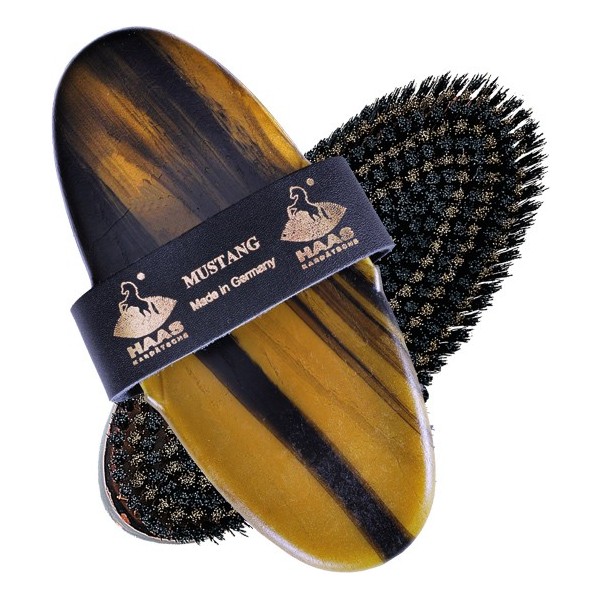 Spazzola Mustang Ladies HAAS con setole sintetiche in combinazione con un filo di ottone . La combinazione unica di setole, uno sviluppo HAAS, rende questa spazzola per la cura ideale per la cura di pelli particolarmente dense e durante il cambio di pelo.