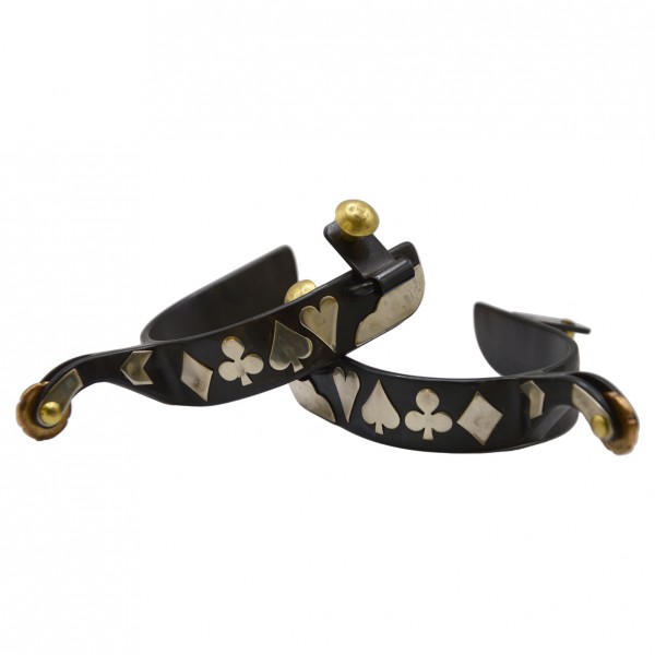 SPERONI WESTERN IN FERRO BRUNITO CON CARTE DA GIOCO